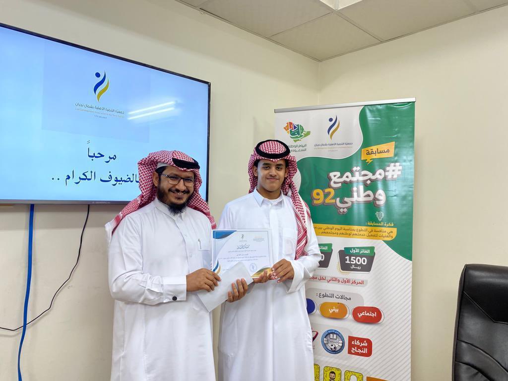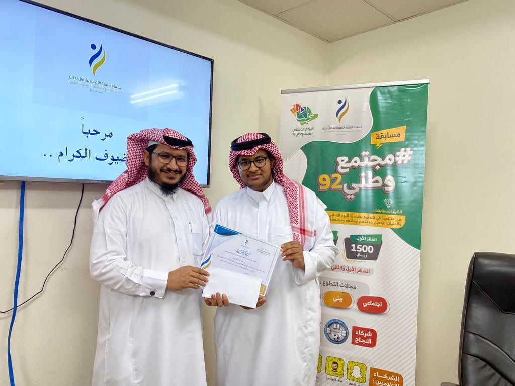 جانب من تكريم الفائزين بمسابقة #مجتمع_وطني٩٢ .. والتي نفذتها جمعية التنمية الأهلية بشمال نجران بالشراكة مع نادي الأخدود الرياضي بمناسبة اليوم الوطني ٩٢ .. #شريك_النجاح نادي الأخدود الرياضي