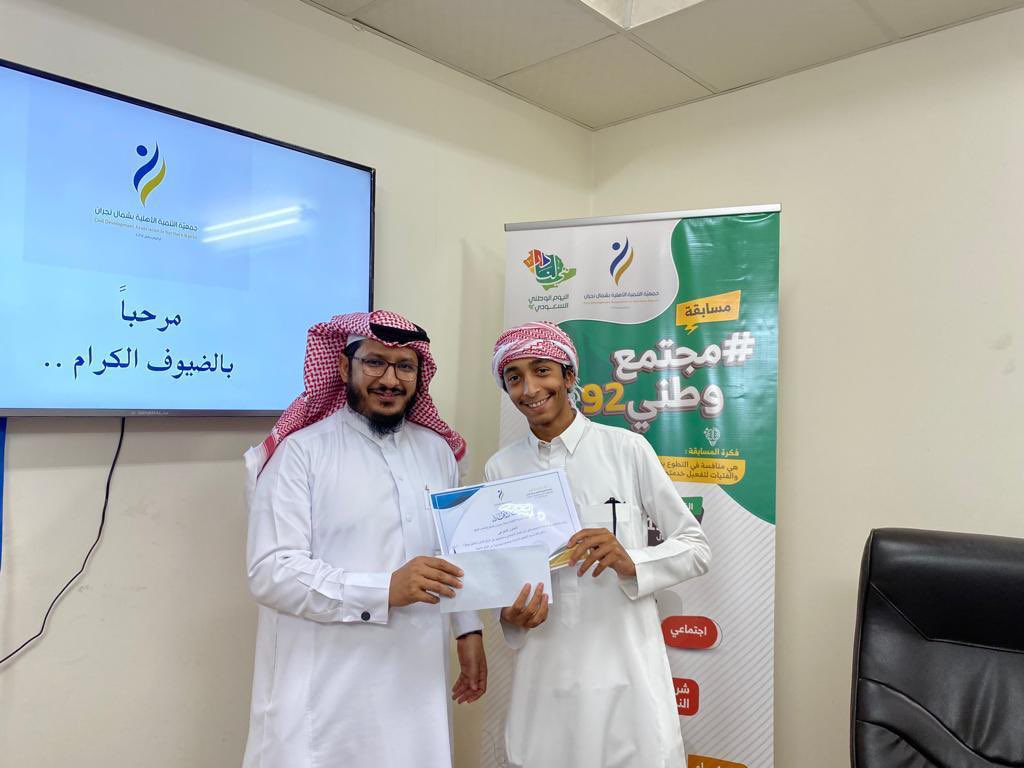 جانب من تكريم الفائزين بمسابقة #مجتمع_وطني٩٢ .. والتي نفذتها جمعية التنمية الأهلية بشمال نجران بالشراكة مع نادي الأخدود الرياضي بمناسبة اليوم الوطني ٩٢ .. #شريك_النجاح نادي الأخدود الرياضي